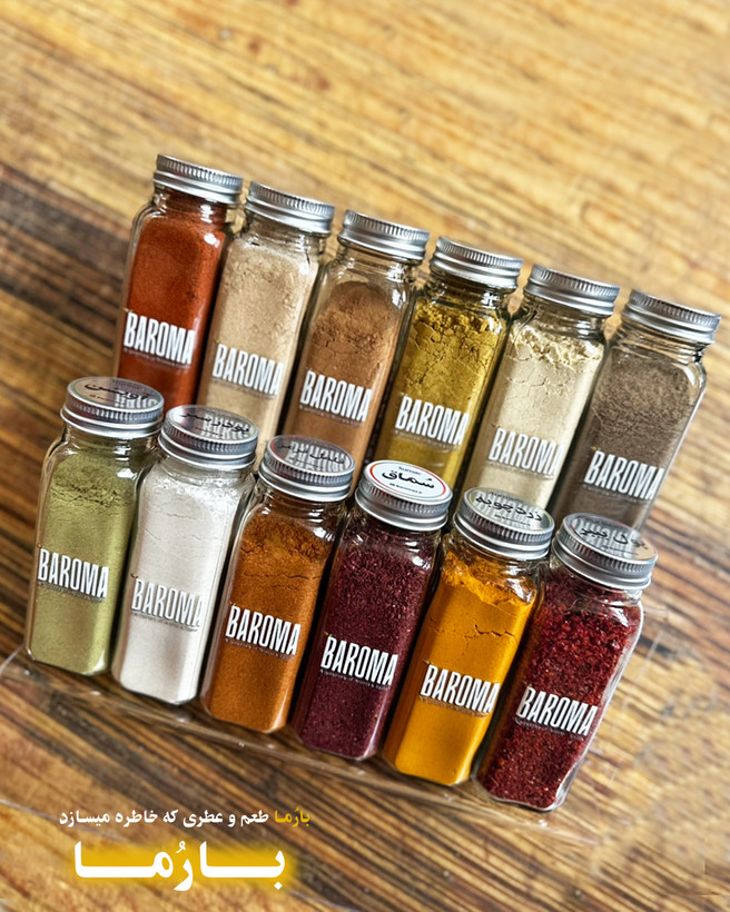 ادویه ها : سماق قرمز اعلا ، پودر سیر ، پودر پیاز ، پاپریکا ، آویشن ، دارچین ، زردچوبه ، فلفل سیاه ، فلفل قرمز ، ادویه کاری ، زنجبیل ، پول بیبر ترکی